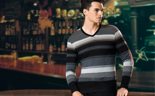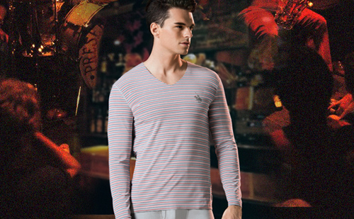 彩條自由裁 B274513 男彈力彩條無痕V領(lǐng)套裝